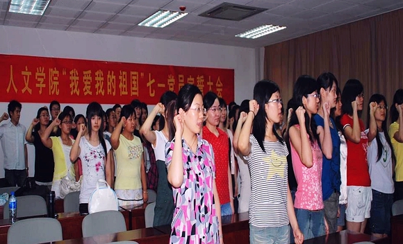 七一党员宣誓活动是人文学院分党委加强对党员的培养和教育活动中重要的一个环节。党委在日常工作中重视对学生党员的培养,加强支部的建设,吸引广大优秀的同学加入党组织中。目前,本科中06级、07级党员、预备党员占全体人数的50.16%,研究生中党员、预备党员为75.89%。这些党员预备党员基本上都为80后、90后,他们在学院党委大家庭的培养下,逐渐成长和发展起来。相信他们一定会在今后的工作生活中履行自己庄严的承诺!