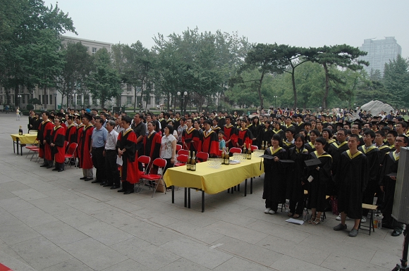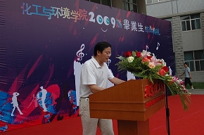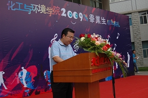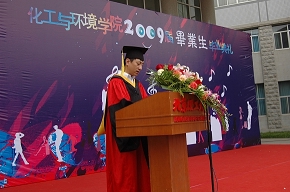 2009年6月26日下午3点,化工与环境学院在中心教学楼门前举行了2009届毕业生毕业典礼暨香槟酒会,化工与环境院长孙克宁、党委书记黄晓鹏、副院长李加荣、副院长冯金生、副书记、副院长孟祥以及各系主任、党支部书记、教师代表出席了典礼。此外,还有远道而来的30多位学生家长,共同见证了学院268名博士研究生、硕士研究生以及本科生的毕业仪式。典礼由化工与环境学院分团委副书记沈方达主持。