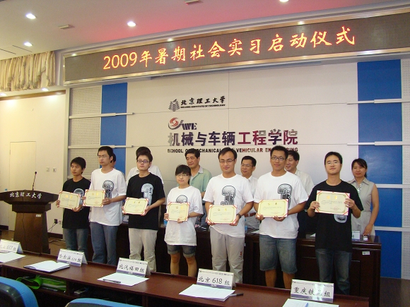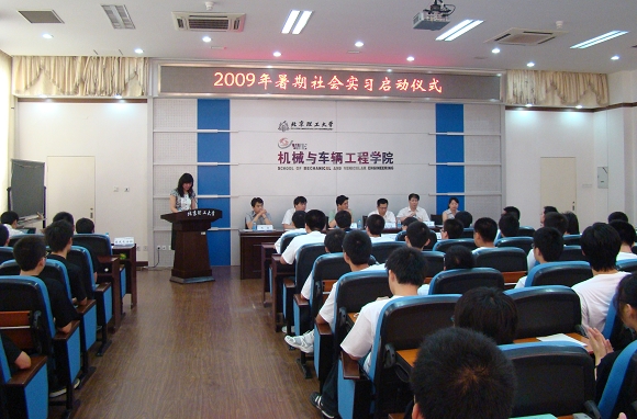 7月4日上午,机械与车辆学院2009年暑期社会实习启动仪式在我校中关村校区举行,此次活动的主题是“增强基层实践能力,服务国民经济主战场”。我校副校长赵显利、招生与就业工作处处长郝志强、教务处副处长林海、学生工作处副处长杨海、团委副书记衡靖、机械与车辆学院院长项昌乐和学院副书记、副院长阎艳等领导出席了启动仪式,中国青年报、光明日报等媒体记者也来到活动现场。参与此次暑期社会实习活动的全体成员和部分良乡校区的学生代表也出席了此次活动。
