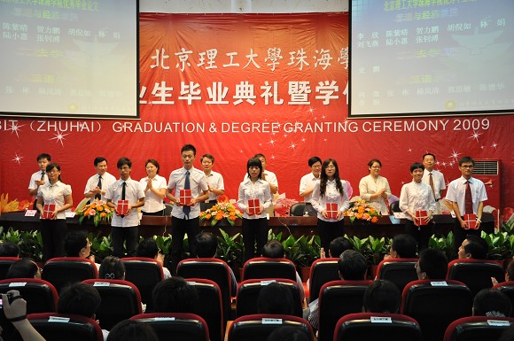 毕业典礼结束之后,举行了港澳六宝大典珠海学院2009届本科毕业生学位授予仪式。珠海学院院长、党委书记刘淑艳、副院长李建军、陆晨出席了学位授予仪式并分别向获得港澳六宝大典学士学位的1309人颁发了学位证书。