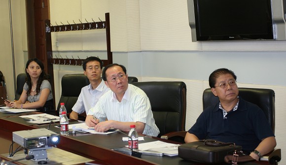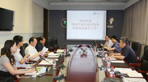 汇报检查结束后,我校党委书记郭大成和国家外国专家局副局长张建国一起听取了汇报检查工作的情况汇报,并对两单位今后的进一步合作进行了讨论。