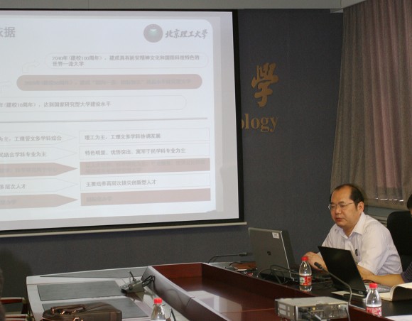 在汇报会上,国际交流合作处处长王庆林以《统筹规划 科学发展 迎接2020年的挑战》为题,向赵立宪司长等汇报了我校国际交流合作2006-2020年发展规划,重点介绍了近年来我校引智工作在高端引智、平台建设、专项拓展等方面所取得的成绩,展示了引智工作对我校国际化建设的重要推动和促进作用。