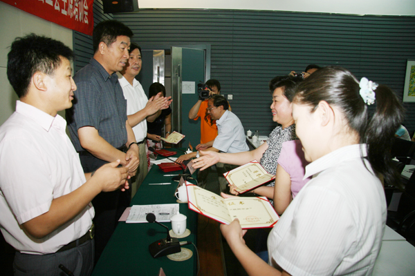 会议举行了“祖国万岁”庆祝建党88周年、迎国庆60周年教职工文艺汇演的颁奖仪式。北京市教育工会主席张青山,校党委书记郭大成,校党委副书记、校工会主席侯光明,校工会常务副主席张剑军等领导为获奖单位颁发了荣誉证书。