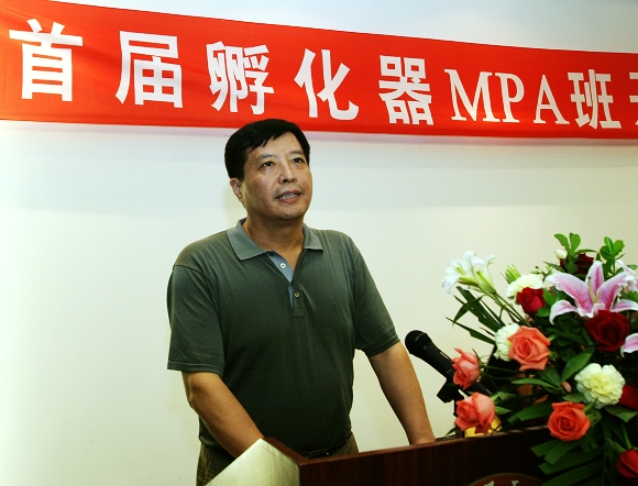科技部火炬中心孵化器管理处张峰海处长也就MPA班的顺利举办谈了自己的体会,他认为孵化器的发展使得相关培训工作的展开非常必要,并衷心希望学员们除了学业,要处理好学业和工作的关系,并借此机会加强学员间的沟通,交流彼此的经验。
