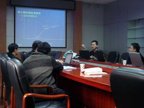 机械与车辆工程学院席军强副教授对实验室的项目情况、已取得的成果和解决的关键技术进行了详细的介绍,之后博士研究生就数字化换档控制技术,传动系统整体控制技术、AMT自适应控制技术及AT控制技术研究等方向进行学术交流,与会双方对车辆传动系统的研究与发展进行了热烈的探讨,并期待今后在该领域内进行更多的学术交流与合作。