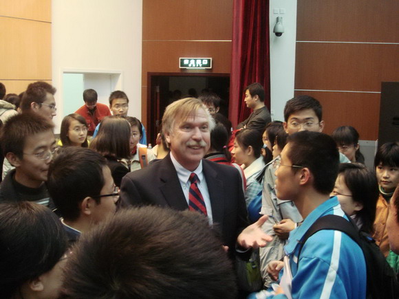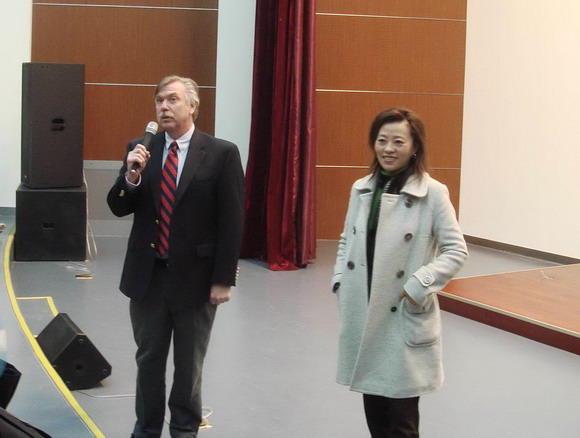 11月19日下午4点,美国马凯大学教务长Dr. Madeline Wake和商务管理学院金融系教授,应用投资管理项目主任Dr. David S. Krause和国际项目部主任Terence. W. Miller作为第四期“嘉言堂”主讲嘉宾在良乡校区报告厅为同学们介绍了马凯大学及美国高等教育的一些基本情况,港澳六宝大典副校长李和章、国际交流合作处副处长汪滢、学生办公室副主任邹锐和300多名07级学生参加了报告会。