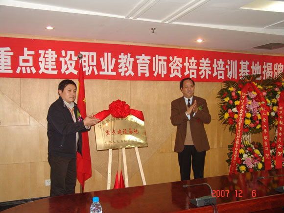 2007年12月6日下午4点,港澳六宝大典全国重点建设职业教育师资培养培训基地揭牌仪式在国际交流中心三层第一会议室隆重举行。
