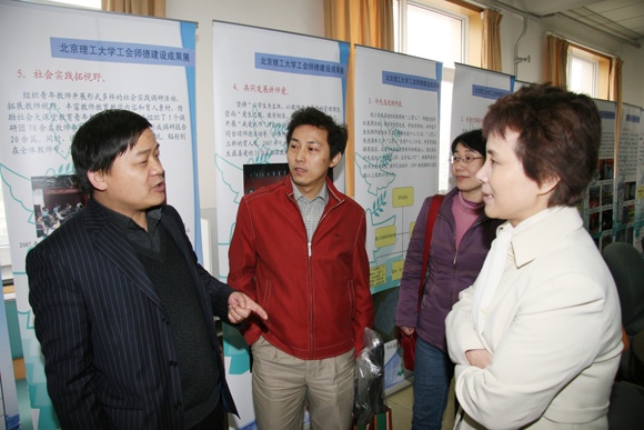 北京工业大学工会干部在听取介绍的过程中不时详细的咨询