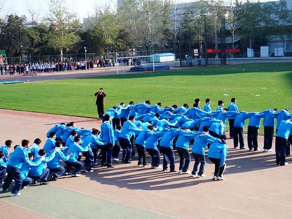 今年是奥运会的决战年,今天是奥运圣火的移交日,宇航学子打出了“宇航拥抱新奥运,运动快乐你我行”的横幅标语,体现了宇航学子对奥运会的热切企盼。上午八点半,在同学们的期待中,运动会隆重开幕!随后的入场式气氛热烈,精彩不断,各参赛班级组织的方阵依次从主席台前走过,响亮的口号,整齐的队形,新颖的表演迎来阵阵掌声。