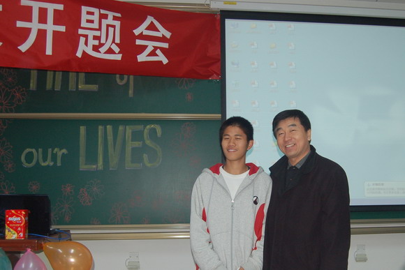 在机车学院2007级车辆一班的德育论文开题会上,戚志治同学幸运地被我校党委书记郭大成老师“抽中”成为全班第一个上台进行德育论文开题的学生,郭书记亲切的邀请这个“幸运”的蒙古族男生在讲台上合影留念。