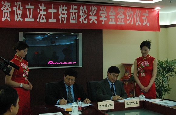 2008年4月18日,由陕西法士特齿轮有限公司在8所高校设立的“法士特齿轮奖学金”签约仪式在西安法士特公司新区隆重举行。法士特公司总经理李大开,书记崔维克,8所高校的学校代表以及陕西的各家新闻媒体出席了签约仪式。学校纪委书记杨蜀康,学生工作处处长刘明奇、机械与车辆工程学院分党委副书记、副院长郝洪涛老师作为我校校方代表出席了签约仪式。