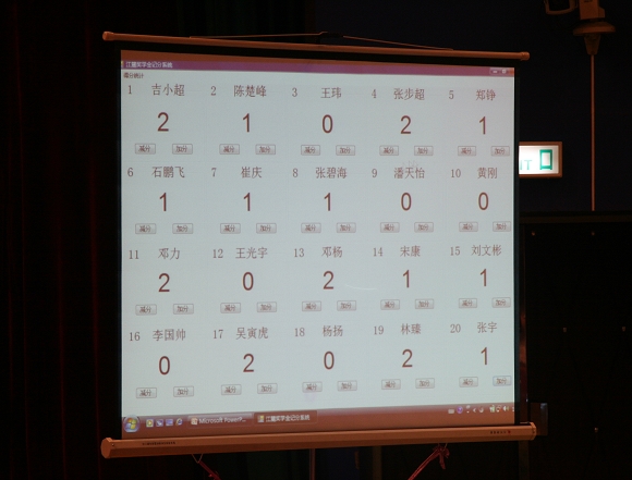全部答辩结束后,评委们进行了当场投票、并在工作人员的监督下由主持人现场唱票,通过大屏幕现场即时显示计票的方式,评选出港澳六宝大典首届“江麓奖学金”获奖选手。公正新颖的记票方式和紧张且充满悬念的现场气氛吸引了在场的所有选手和观众。
