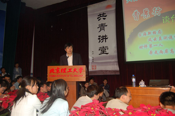 在长达两个小时演讲中,曹先生从分析本次台湾地区领导人选举过程入手,详细的解答了国民党赢得选举的主要原因。他幽默的指出:“国民党能赢关键之一是因为陈水扁够烂!”此言一出场上顿时掌声、笑声四起。他指出,民进党第一次赢得选举的主要因素之一是成功的抨击了国民党的腐败,但是他们今天落败的一个重要因素恰恰是源于自己的腐败。而且,他们长期以来肆意破坏两岸关系的举动,严重影响和制约了台湾经济的发展,损害了广大台湾人民的利益,所以造成国民党以绝对优势赢得选举。