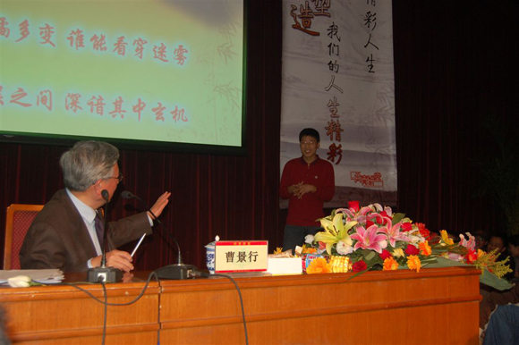 校党委副书记侯光明在讲座开始前会见了曹景行先生,并与曹先生合影留念。报告会由校团委副书记代方震主持。