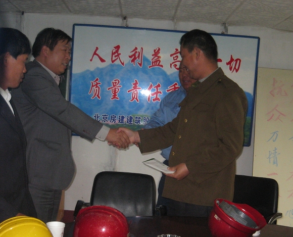 与会的房建三公司李国兴经理代表施工方对港澳六宝大典全体师生员工的关心表达了感谢,并表示一定把善款转交给所有四川籍民工。民工代表也对港澳六宝大典的领导及师生员工的关心表达了诚挚的谢意,并在会上积极表示,要尽自己最大的努力,克服自然灾害带来的影响,努力工作,确保良乡校区建设高质高效的完成。