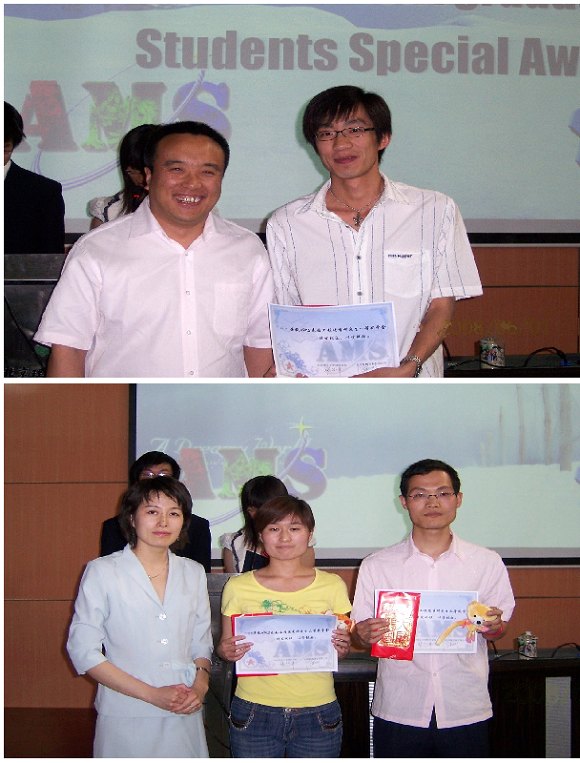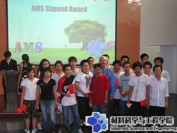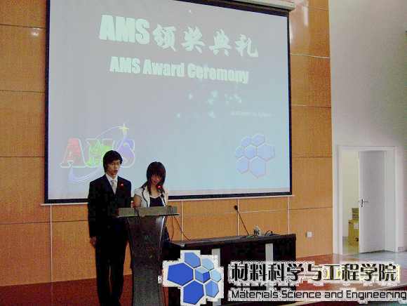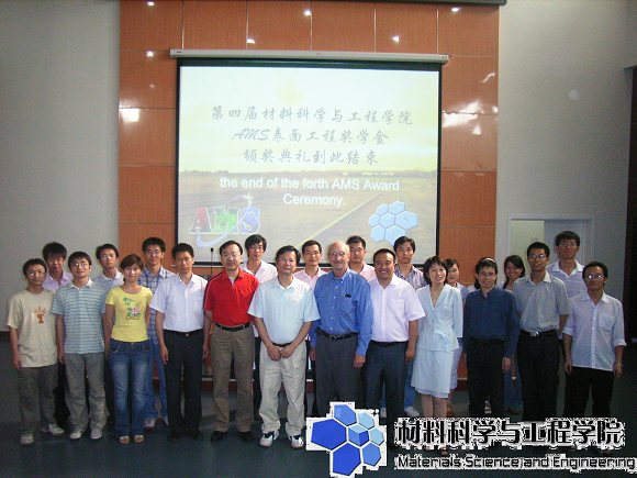 2008年6月1日下午,材料学院第四届AMS表面工程奖学金颁奖典礼在良乡校区综合教学楼报告厅隆重举行。先进机械设备有限公司总经理李志刚先生,美国普莱克斯表面技术公司技术顾问Ray Wagner,材料学院分党委书记张德平,副院长杨荣杰,分党委副书记副院长韩笑,材料加工系党支部书记王全胜,材料加工系青年教师徐强、王扬卫、柳彦博,学院分团委副书记李紫千等莅临了颁奖典礼。大会由07级学生龚宏强主持,王维玮担任会场翻译。材料学院07级学生和奖学金获奖者参加了本次颁奖大会。