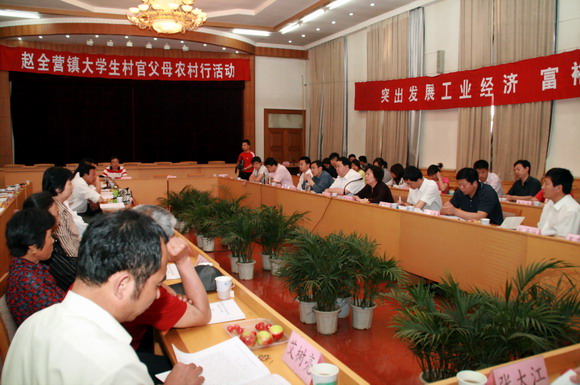 5月31日(周六)上午9:00,北京市顺义区赵全营镇“大学生村官座谈会”在该镇镇政府会议室举行。我校就业办公室副主任林骥佳、生命科学与技术学院分党委书记李兰东、分团委书记王征、代表村官培养母校出席了会议。此次座谈会,全体村官的家长也专程从外地赶来参加。