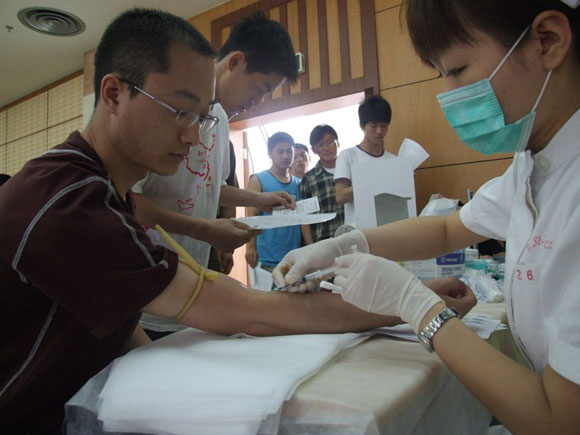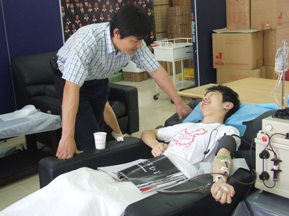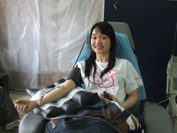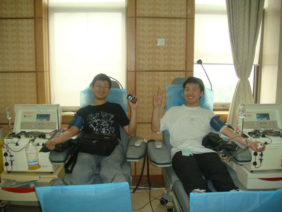 在此次我校师生支援抗震救灾活动中,有2000余名同学踊跃报名做献血志愿者。目前为灾区救治病人主要缺乏血浆,基本不缺全血;近日,灾区向首都提出2000袋血浆的援助申请!5月31日,校团委、研究生会、学生会以及红十字会共同组织了我校中关村校区和良乡校区220余名学生和专职团干部来到北京市红十字会血液中心,参加为灾区同胞献血活动,以实际行动支援抗震救灾.