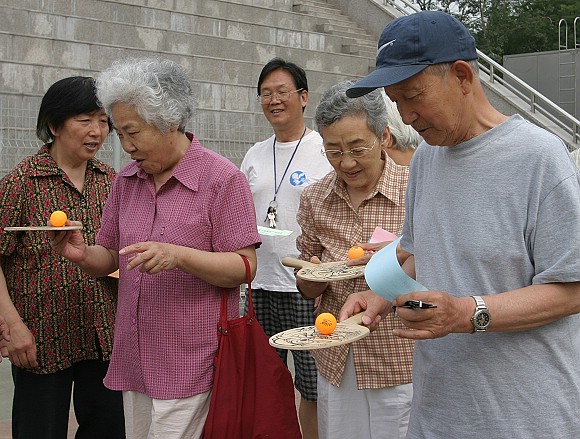 运动会根据老同志的身体情况设:《足球射门》、《走独木桥》、《拉小车》、《托球跑》、《钓鱼》、《投篮》、《投包》等项目,把体育与趣味相结合,受到老同志们的欢迎。