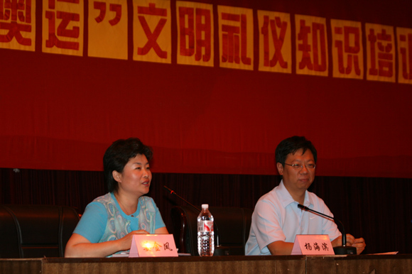 奥运是中国人的百年期盼,开好本届奥运会是中国人的共同期望。为大力普及奥运基本知识和公共礼仪常识,提高后勤工作人员服务接待能力和文明素质。2008年6月26日,由后勤集团工会邀请人文学院副院长杨海滨老师为大家讲授了奥运文明礼仪知识,有来自后勤集团各个中心的300余人参加了此次培训。培训由集团党委副书记、工会主席姜金凤主持。