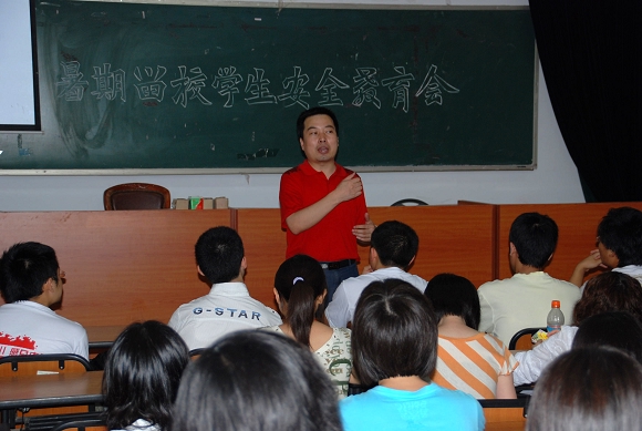 2008年7月17日晚7:30,人文学院暑期留校学生安全教育会在1号教学楼110教室举行,学院党委副书记、副院长贾利军老师出席,辅导员和假期留在学校的近百名学生参加了此次教育活动。