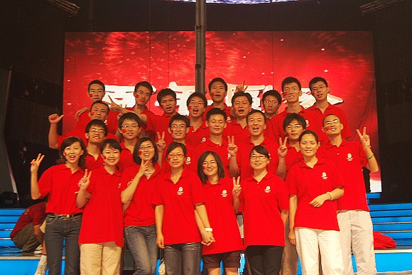 作为观众演员,虽然不是晚会的主角,需要和舞台配合互动的内容却不少,师生们不顾天气炎热,心甘情愿放弃休息时间,一次次认真排练,修改,再排练,大家相互配合,相互提醒,尽力把动作整齐划一,时常排练到晚上十点才回去,大家只有一个目标:为晚会营造祥和、激情、喜悦和圆满的氛围做出自己最大的努力。经过几天紧张辛苦的训练,北理工师生展示出的团结向上、朝气蓬勃的精神风貌,赢得了导演的充分肯定和一致好评。北理工师生安排就坐在观众席正中央成为晚会现场一道亮丽的风景线,他们将用嘹亮的口号,深情的歌声,热情的微笑,舞动的臂膀,通过中央电视台发出向世界宾朋的问候和邀请,用歌声热情拥抱北京奥运客人、为奥运加油,用自信的姿态迎接北京奥运会的到来。