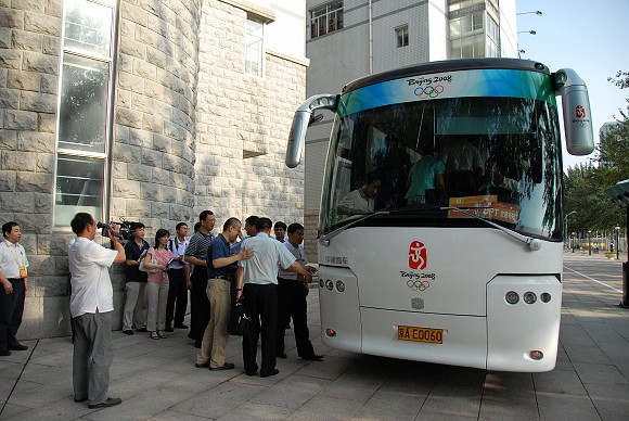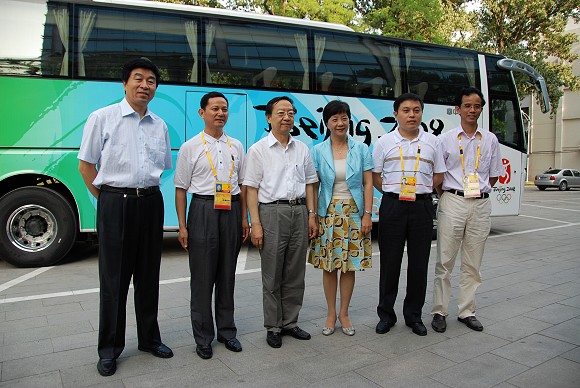 李毅中部长一行在试乘我校研制的奥运会专用纯电动豪华客车。