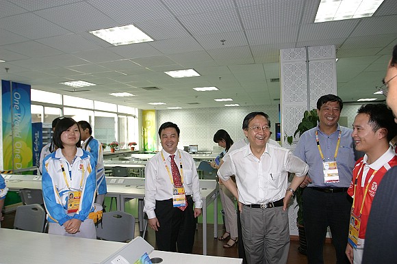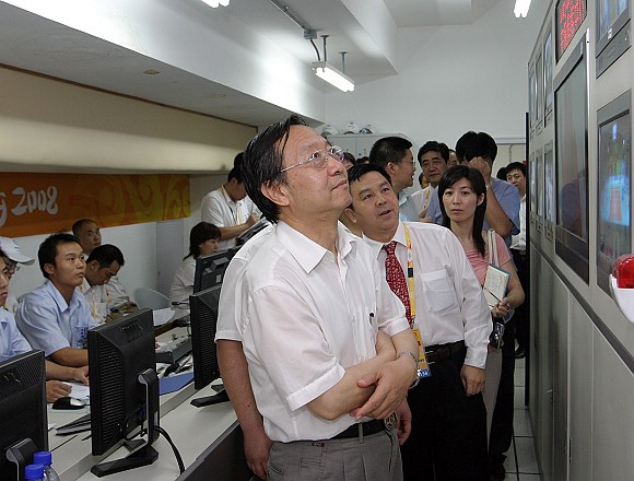 李毅中部长在场馆检查安保系统。
