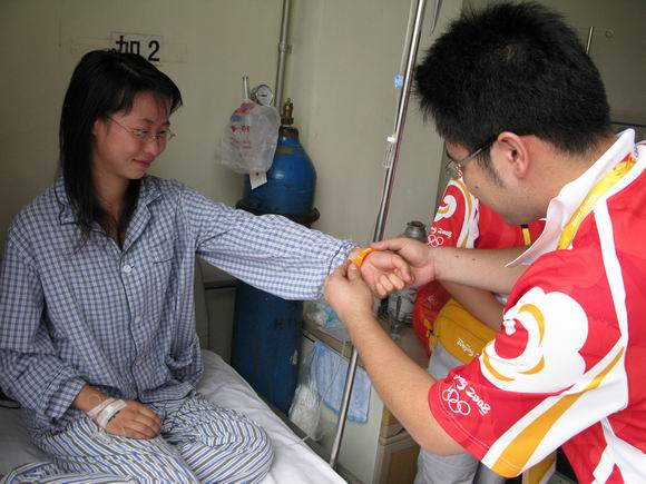 这次在参加奥运志愿者培训时,小莹就感到身体不适,但是她依然坚持培训,因为她深知自己肩负着奥运志愿者的光荣使命,同时在观众服务团队这个温暖的大家庭里,她感到无比的温暖,她不想因为身体不舒服而错过与大家分享志愿奥运的快乐。培训期间,小莹一直默默坚持着,没有一次迟到,也没有一次早退。直到前天,小莹发起了高烧,病情加重,她来到校医院就诊,校医院的医生对小莹的病情十分重视,建议她去校外医院就诊,小莹被诊断为急性肺炎,海淀医院的医生要求她留院观察治疗。虽然十分不舍观众服务大家庭,小莹还是不得不暂时悄悄地离开。