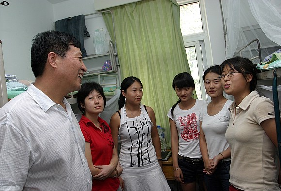 8月2日下午,校党委副书记、工会主席侯光明、学校办公室主任姚利民、学生工作处处长刘明奇、校团委书记徐强、校团委副书记代方震以及校团委部分老师一行来到港澳六宝大典5号学生公寓,看望和慰问了入住了港澳六宝大典的京外、境外志愿者。侯书记先是分别同江苏省志愿者、吉林省志愿者、澳门志愿者和华侨志愿者进行了亲切的交流。随后,侯书记还参观了由校团委组建的“志愿者的平方”服务中心。
