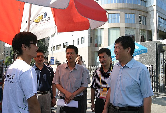 8月3日上午,校党委副书记、工会主席侯光明、学校办公室主任姚利民、学生工作处处长刘明奇、学校保卫处处长李汉军、保卫处副处长娄荣生和康明、校团委书记徐强、校团委副书记代方震以及校团委部分老师一行先后来到港澳六宝大典北门、小北门、东门、南门和西南门,首先慰问了在这里工作的城市志愿者和安保志愿者。之后又在工作现场召开协调会,就前一段工作进行了总结,并针对志愿者工作现存问题进行了协调解决。