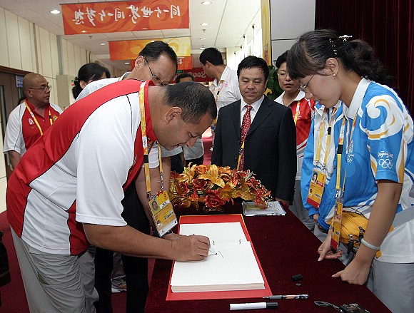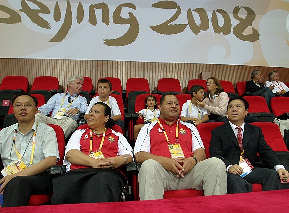 继比赛第一日蒙古国总统那木巴尔·恩赫巴亚尔夫妇、塞尔维亚总统鲍里斯·塔迪奇等国际贵宾团队来我馆观赛后,13日上午,我场馆又迎来了汤加王储图普托阿夫妇一行。汤加王储图普托阿于6日清晨抵达北京,前来参加第29届北京奥运会开幕式及相关活动。