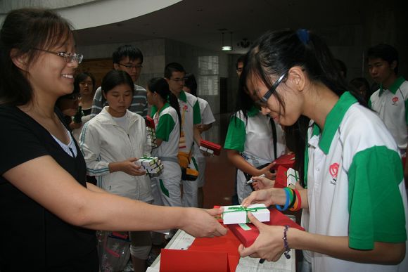 由计算机学院组成的澳门志愿者接待小组也给所有澳门志愿者精心的准备了一份纪念品。