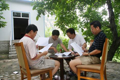 教师们在认真审阅“师德”论文