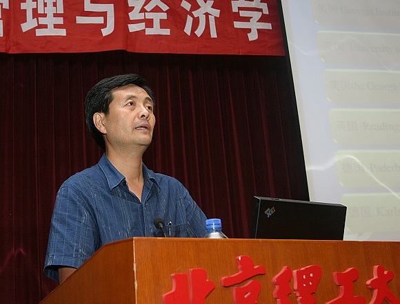 随后,管理与经济学院主管实验室和行政工作的纪新华副院长致辞。他为同学们介绍了学院各个实验室的情况,表示会为同学们的学习给予最大的帮助和便利。