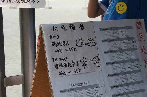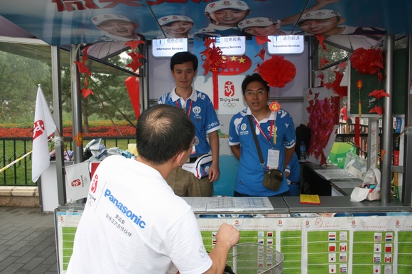 在我们的服务站点,志愿者们集思广益,精心布置自己的“蓝立方”。如醒目的奥运会倒计时牌、体贴的天气预报、奥运旗帜、具有中国传统文化的福娃剪纸、奥运寄语、赛程预告、金牌榜和模拟篮球架等,这些体贴的布置不仅让志愿者们感受到自己服务站点的美观,而且能让前来咨询的广大市民和外国友人亲切体会到一种回到“家”的温馨感。