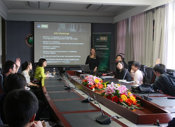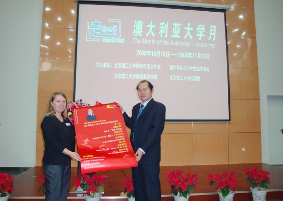 2008年10月17日下午和10月18日上午,“走向世界——澳大利亚大学月”澳大利亚国立大学专场报告会分别在良乡校区和中关村校区举行。来自澳大利亚国立大学工程和计算机学院的项目协调官Sammantha Bronar女士为我校研究生和本科生做了精彩的报告。她详细介绍了澳大利亚国立大学的总体情况、BIT-ANU合作项目情况,以及国立大学学生的学习和生活情况。