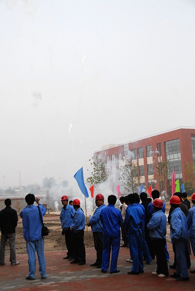 在李和章校长宣布2#宿舍楼竣工仪式圆满结束之后,所有参加仪式的人员,共同在喜悦热烈的鞭炮声中,验证了2#宿舍楼的正式落成,体会着建设工作者光荣与成就。