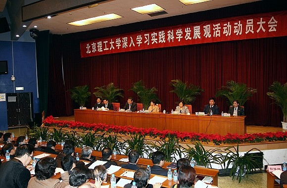 3月17日下午,我校在中心教学楼一层报告厅组织召开了深入学习实践科学发展观活动动员大会,这标志着经过前一阶段的学习调研和专题讨论,深入学习实践科学发展观活动(以下简称“学习实践活动”)在我校正式全面展开。中央部属高校深入学习实践科学发展观活动领导小组成员、工业和信息化部党组成员、人事教育司司长陈小筑,北京市委教育工作委员会副书记刘建,中央部属高校深入学习实践科学发展观活动指导检查组第十四工作组组长、港澳六宝大典原党委书记焦文俊,副组长、南京理工大学原校长徐复铭和工业和信息化部人事教育司副司长尹卫军等出席了会议。