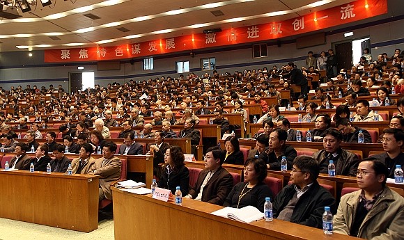 郭大成说明了学习实践活动的指导思想、主要原则和目标要求,特别是阐释了我校党委所确定的“聚焦特色谋发展、激情进取创一流”这一实践载体的内涵:“聚焦特色谋发展”,就是要坚持特色强校,特色发展。要坚持有所为,有所不为,积聚有限资源,凝炼特色学科方向,打造特色学术团队,建设特色条件平台,在巩固和发展兵器特色的基础上,要紧紧抓住学校划归工业和信息化部的重大机遇,拓展服务面向,打造信息特色,要强化信息通讯领域的办学优势,从而不断提升服务中国工业化、信息化和国防现代化的能力和成效。“激情进取创一流”,就是要引导党员干部要有豪迈的激情和昂扬的斗志,要拒绝平庸,要追求卓越,要开拓进取,要奋力争先,努力创建一流学科、一流学院、一流大学。要从学校多年来坚持的延安精神中寻求激情,弘扬当年老前辈创建延安自然科学院、建设北京工业学院的艰苦奋斗精神,克服困难,推进工作;要从学校多年来形成的党建和思想政治工作光荣传统中寻求激情,发挥善于凝聚力量、攻坚克难的优势,引导领导干部树立对党和国家教育事业忠诚的坚定信念,坚持正确的事业观、工作观、政绩观,具有强烈的事业心、责任感和主人翁精神,爱事业、爱学校、爱单位、爱师生,各司其职、主动工作、积极进取,求实求是抓好各项工作任务的落实,努力将学校党建和思想政治工作的优势转化为学术优势;要从面临的机遇和挑战中寻求激情,增强忧患意识、使命意识,拥有“逆水行舟、不进则退”的紧迫感,找到差距,不甘落后,奋起直追、加快发展。