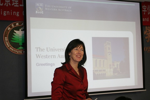 2008年10月21日上午,“走向世界——澳大利亚大学月”澳大利亚西澳大学专场报告会在中关村校区举行。来自澳大利亚西澳大学科研副校长Robyn Owens教授为我校研究生和本科生做了精彩的报告。Robyn Owens副校长详细介绍了西澳大利亚州和西澳大学的总体情况,阐述了学校的国际化办学理念和使命,着重介绍了学校的学术、科研优势,以及国家留学基金委奖学金的申请流程。