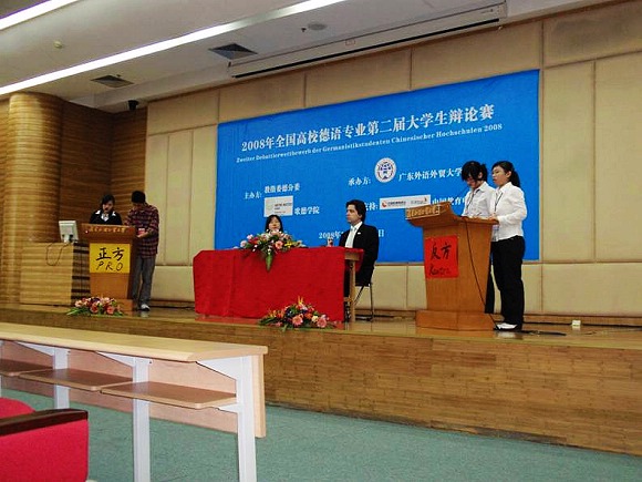 2008年11月14、15日,全国高校德语专业第二届大学生辩论赛在广东外语外贸大学隆重举行。来自全国37个高校德语系的74名选手同台竞技,大家一决高低,志在必得。