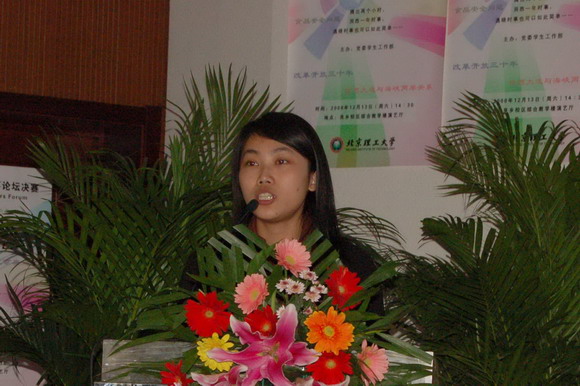 今年的三鹿事件引发了我国食品信任危机,理学院王男同学从政府对三鹿事件响应速度和处理方式出发,说明了政府对食品安全问题的重视,进而引申出党和政府以人为本的执政理念。