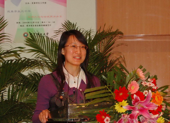 来自管理与经济学院的李璐同学,为大家带来了一场别开生面的颁奖典礼,将“民族精神”、“志愿精神”、“希望中国”三个奖项颁给了在2008年一系列大事中作出重大贡献的80后,从精神层面向大家解读了80后在这一年中的精彩表现。