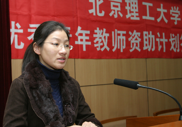 理学院靳艳飞老师作为2008年度“优秀青年教师资助计划”入选教师的代表在会上作了发言。她表示,对于一名新入校的青年教师,能得到“优秀青年教师资助计划”的资助,让她感受到了学校对青年教师科学研究工作的支持和激励,她将重视和珍惜机会,依托优秀青年教师资助计划的支持,开展高水平、高质量的研究工作,研究课题要立足创新,要结合国家中长期科技发展的要求,努力寻求新突破,争取取得创新性成果,为今后的科研工作打下扎实的基础。