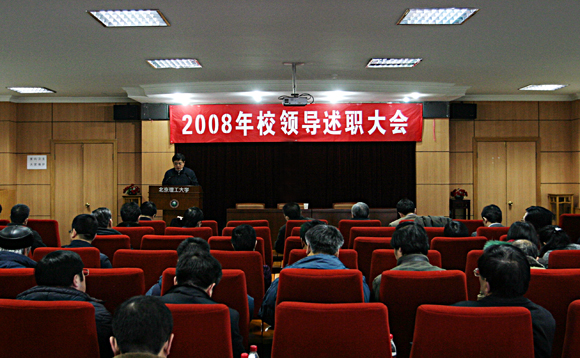 2009年1月9日上午,按照工业和信息化部工信人[2008]113号《关于2008年部直属单位领导干部年度考核工作的通知》要求,我校在逸夫楼二层报告厅举行了2008年度校领导述职大会。会议由校党委书记郭大成主持。工业和信息化部人事教育司副司长尹卫军,北京市委教育工委联络员,原中国人民大学党委副书记沈云锁同志出席会议。