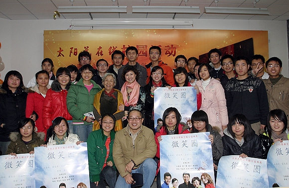 会后在我校“太阳花在线”影院举行了全国高校校园影视联播网“太阳花在线”的开播仪式,播放了公益电影《微笑圈》。《微笑圈》电影的主创人员,包括导演和演员等与我校学生进行了互动交流。