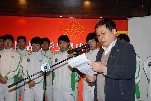 李和章副校长表示,尽管球队目前遇到一些困难,但不管怎样,作为一支有自己特色的队伍,在经历一切困境的时候,会用自己的热情与自信去迎接挑战,去争取到前进的曙光,2009赛季对于学生军来说可谓机遇与挑战并存。他表示学校各级领导都将会全力支持足球队的各项工作,学校今年将根据中甲联赛的实际情况,继续加大对足球队的投入,改善训练和后勤保障条件;在训练中加强科学性。在新生力量的补充方面,对于应届高中毕业生,无论是否体育特长生,只要符合球队征战中甲要求的水平,都可以随时与学校联系,学校的大门永远是敞开的,同时我们还将继续积极引进留学生外援。他希望所有队员要有使命感,要有荣誉感,要充分表现出体育回归教育的理念。他同时也希望社会各界尤其是民族企业今年能继续给予足球队大力支持,在足球队招商方面希望能得到社会各界的关注。