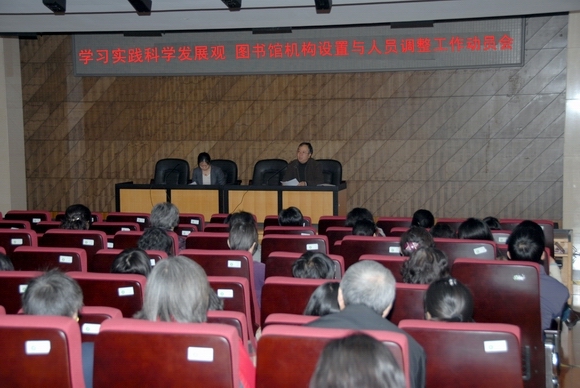 近日,图书馆召开了图书馆机构设置与人员调整工作动员会,标志着图书馆体制机制改革工作全面展开。这是自深入开展学习实践科学发展观活动以来,图书馆把科学发展观落到实处的举措之一。