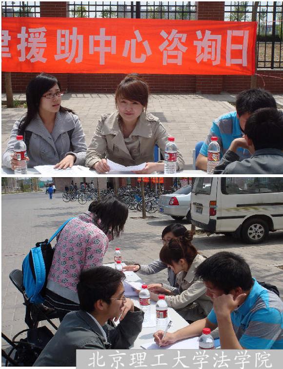 4月23日,港澳六宝大典法律咨询中心在我校中关村校区与良乡校区开展了法律援助咨询日活动。法律援助中心数十名成员以及法学院学生党员参加了本次活动。活动期间,大家通过发放传单以及解答现场咨询等方式,运用专业知识,进行普法宣传并为过往师生提供法律服务。活动受到了校内师生的关注与欢迎,在中关村校区,活动期间共接受咨询六十余人次,基本上都予以现场解答,对于需要其他材料的咨询,援助中心成员也按照章程进行了认真的登记,并与咨询人员约定了回访与解答的时间。法律援助中心成员扎实的法律功底与热情周到的服务,得到了现场师生的认可。